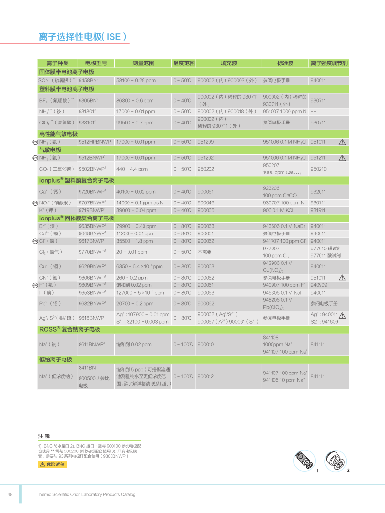 Thermo Orion 奧立龍電極-pH 電極、參比電極、溫度補償電極、溶解氧電極、氧化還原電極、離子選擇電極